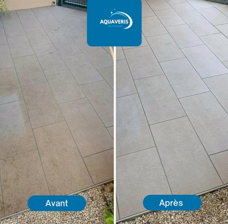 Nettoyage de terrasses : Intervention sur tous types de surfaces extérieures.